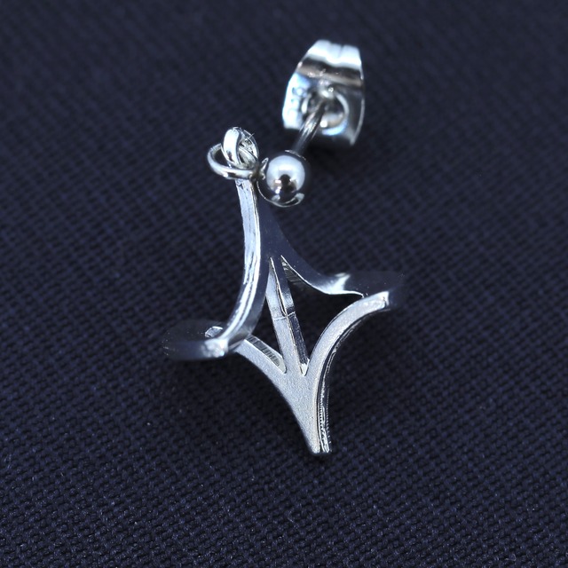 LINE ARROW ラインアローはケーブダイビングで洞窟内の出口を示す道具です。この形をアクセサリーにアレンジし、悩みや困難に直面している人が必ず出口を見つけられるようにとの思いを込めました。 デザインは左右同じとなります。 チャームにシルバー[Silver925]を使用しています。 様々なスタイルのピアス,イヤリングを取り揃えています。 お好みに合わせて以下の選択肢からお選びください。 [ピアス] ①スタッドピアス ②フープピアス小(直径11mm) ③フープピアス大(直径15mm) [イヤリング] ④三角バネ式イヤリング ⑤フープバネ式イヤリング 素材 •チャーム(飾り部分): Silver 925 •スタッドピアス: サージカルステンレス(SUS316L) •フープピアス小: [ポスト]チタン [その他]真鍮 •フープピアス大: サージカルステンレス(SUS316L) •イヤリング: 真鍮(ニッケルフリーメッキ)